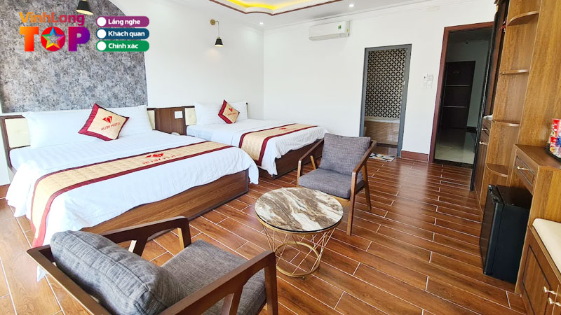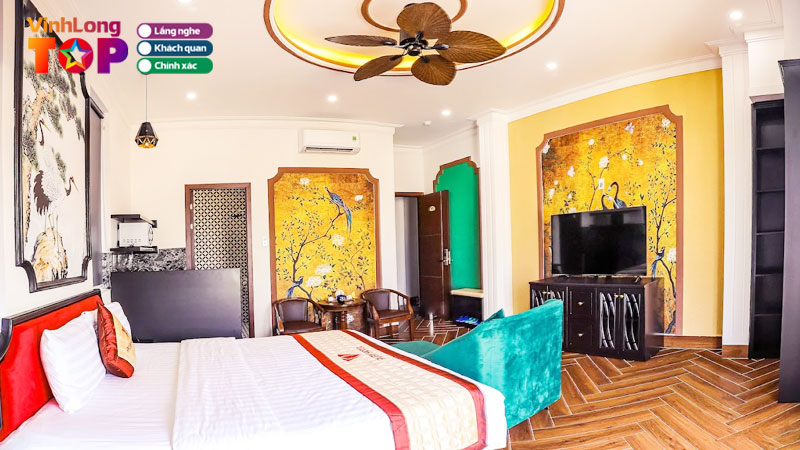 Vị trí thuận tiện cũng là một điểm cộng lớn. Từ khách sạn, du khách có thể dễ dàng di chuyển đến các điểm tham quan, khu mua sắm hay khu ẩm thực đặc trưng của Vĩnh Long. Điều này giúp tiết kiệm thời gian di chuyển và tận dụng tối đa quỹ thời gian cho chuyến đi.